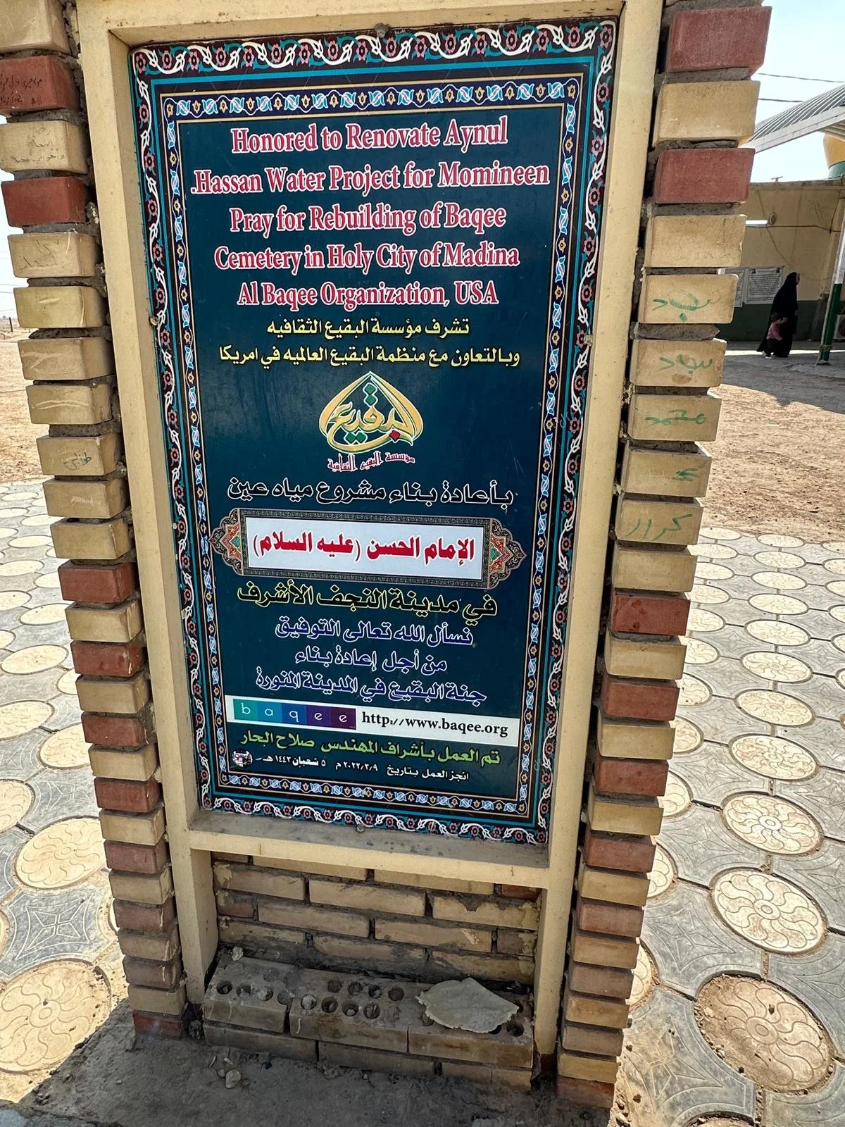 أنجزت مؤسسة البقيع أعمال إعمار عين الإمام الحسن (بئر الإمام الحسن عليه السلام)، الواقع جنوب النجف الأشرف، وهو موقع ذو مكانة روحية وتاريخية عريقة يرتبط وجدانياً بإرث الإمام الحسن بن علي (عليه السلام). وقد ظل هذا الموقع عبر الأجيال مقصدًا للزائرين وأهالي المنطقة، لما يتميز به من نبع ماء جارٍ حتى يومنا هذا، فضلًا عن كونه محطة رئيسية للتجمعات السنوية في السابع من شهر صفر إحياءً لذكرى شهادة الإمام الحسن (عليه السلام). وجاء هذا المشروع مع الالتزام الكامل بحرمة المكان وقدسيته، وبما يعزز السلامة العامة وسهولة الوصول ويحفظ الهوية الدينية والثقافية للموقع، تكريمًا للقيم الخالدة التي جسدها الإمام الحسن (عليه السلام) من صبر ووحدة وعدالة. كما يحمل هذا الإعمار بُعدًا رمزيًا أوسع، يذكّر بالمسؤولية المشتركة في حماية وصون المعالم الإسلامية المقدسة، وفي مقدمتها جنة البقيع في المدينة المنورة، المرقد الطاهر للإمام الحسن (عليه السلام)، داعيًا المؤسسات والجهات الحكومية والمجتمع المدني إلى الاضطلاع بدورهم في حفظ المواقع التي تشكّل ركائز أساسية في تاريخ وهوية الأمة الإسلامية